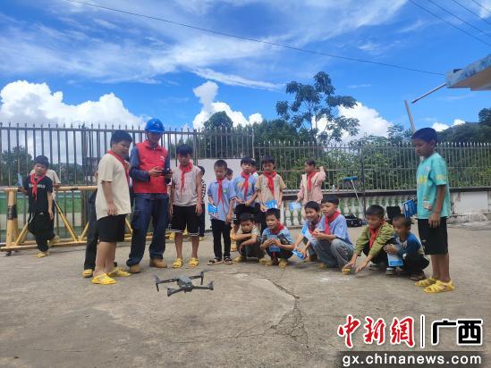 图为宁明供电公司青年志愿者为孩子们作无人机操作演示。黄杰芬 摄