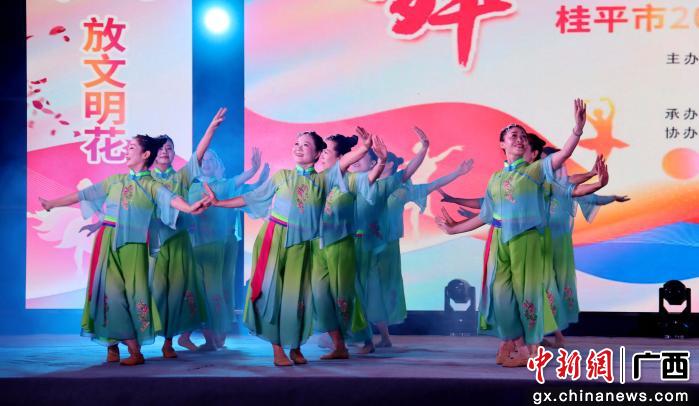 总决赛舞台上,精彩轮番上演。各参赛队伍身着各色靓丽服饰,伴随着明快激昂的音乐,用优美流畅的舞姿、富有节奏感的步伐,展现出桂平群众昂扬向上的艺术风貌。