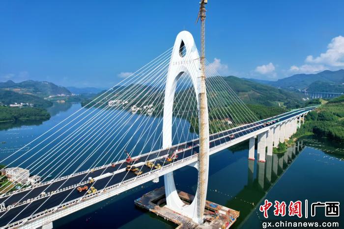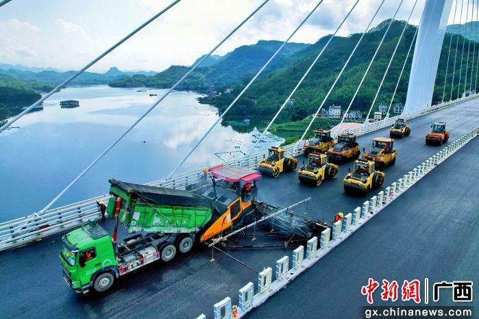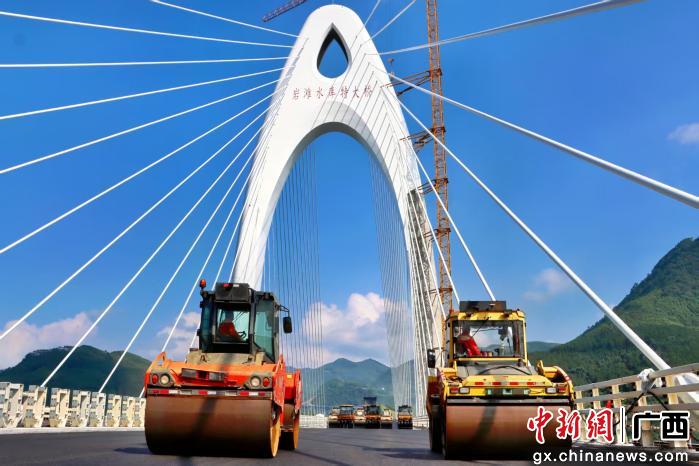 中新网广西新闻10月19日电 (邓代兵 谢霞梅)近日,随着最后一车沥青混合料在岩滩水库特大桥摊铺结束,巴羌高速主线沥青路面施工全面完成,标志着项目正式迈入交工倒计时阶段。