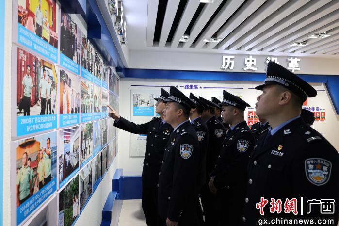 在站警史馆,全体民警通过观看实物、照片、文字、奖章奖牌等,共同回顾该站建站以来在边检主业、政治建设、后勤保障等方面取得的优异成绩。一幅幅珍贵的图片,一段段感人的故事,无不激励着大家在未来的道路上发扬柳州边检的优良传统,勇于担当、迎难而上,在学思悟践中踔厉奋发、砥砺前行。