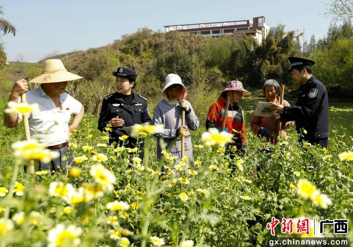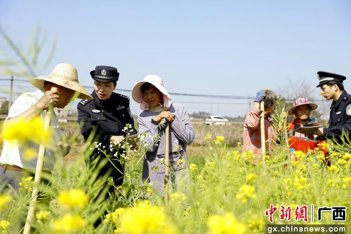 仲春时节,春耕正忙。3月12日,广西贺州市公安局平桂分局民警辅警深入田间开展禁种铲毒宣传,通过罂粟与青菜混种对比图,向村民讲解辨识要点与法律后果,引导群众自觉抵制、积极举报,筑牢乡村禁毒防线。