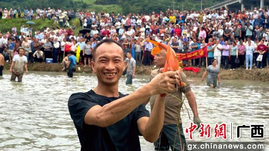 9月22日,广西南丹县芒场镇村民展示抓到的锦鲤。高东风摄
