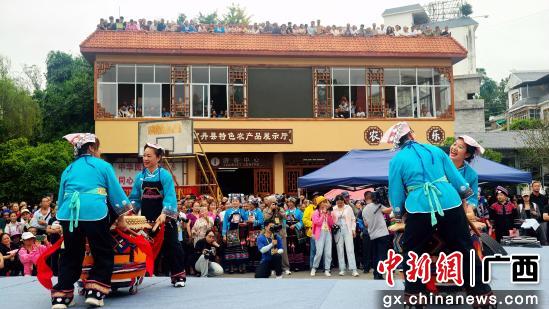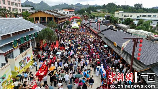 9月22日,广西河池南丹县芒场镇巴平村郦久郦杰土司文化旅游景区举行丰收节活动,当地壮族、汉族、瑶族、苗族、布依族等民众欢聚一堂。丰收集市上展销“南丹瑶鸡”“南丹巴平米”“南丹油茶”等特色农产品,打响“南丹味道”区域品牌,勾勒出一幅“乡村振兴”画卷。