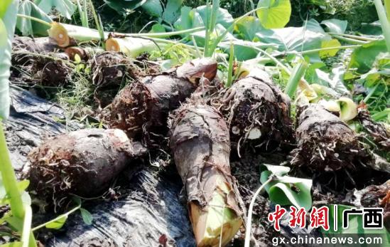 中新网广西新闻9月26日电 (陶胜平 赵万枝)近日,广西贺州市平桂区鹅塘镇华山村的300余亩香芋迎来丰收。田间地头,农户们正忙碌地采收、分拣、装车,一个个饱满香浓的香芋即将销往各地市场。