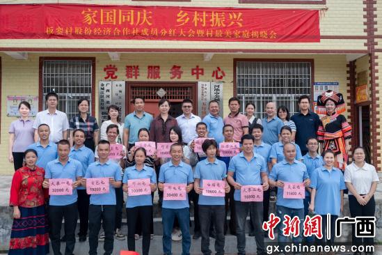 中新网广西新闻9月30日电 (黄华勇)9月29日,河池市金城江区五圩镇板銮村迎来了股份经济合作社成员分红大会暨最美家庭分享会。全村11个屯共1317名股民共分红26.34万元(含147户脱贫户)。村民们脸上洋溢着灿烂的笑容。