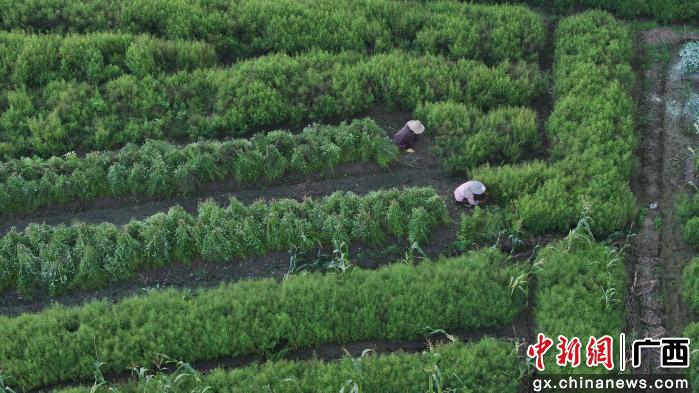 中新网广西新闻10月16日电(岑记华 谢海兵 陆远培)金秋十月,正值丰收时节。近日,记者走进贵港市港北区大圩镇何村的田间地头,玉米秆依然挺立田间,其下套种的穿心莲已迎来采收旺季。村民们弯腰穿梭在田垄间,熟练地收割、捆扎、搬运,空气中弥漫着中药材特有的香气。