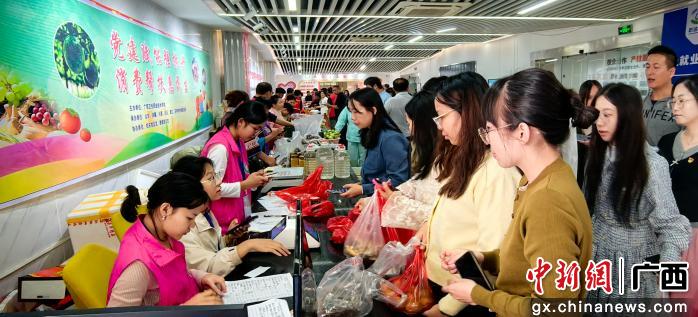 中新网广西新闻10月30日电 近日,广西卫生职业技术学院以“党建赋能促振兴 消费帮扶惠民生”为主题的特色农产品展销活动火热进行。该校对口帮扶的龙胜县山东村、洪寨村、六漫村、白石村、黄江村、石甲村,携各村的优质土特产品走进校园,广大师生以实际消费行动助力乡村振兴。