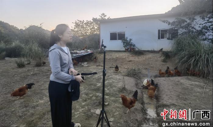 中新网广西新闻11月19日电 (王小春)“今天给大家直播的是我们马头镇四明村生态鸡的养殖情况,我们的生态鸡肉质紧实不柴,养足220天,平均6斤多……”这是近日南宁市武鸣区马头镇四明村驻村工作队员和选调生发挥自身优势,直播卖鸡的生动一幕。