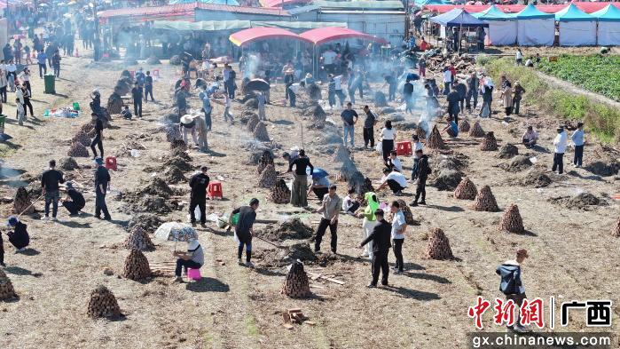 “千人窑番薯”“窑鸡”体验是本次活动的亮点,百余座提前搭建的土窑在富硒番薯种植基地旁整齐排列,让城乡群众得以沉浸式感受广西特色农耕乐趣。活动现场,工作人员早已备好经过富硒认证的本地番薯、三黄鸡及甜玉米等食材,游客只需按指引用锡纸包裹食材,便可送入烧得正旺的土窑中。