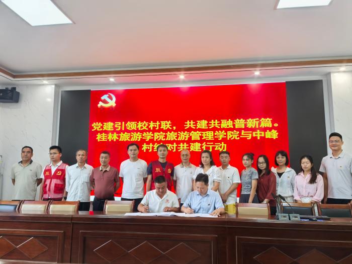 桂林旅游学院旅游管理学院与中峰村开展党建结对共建活动并签订合作协议,构建起“校地党组织共建、资源共享、发展共促”的长效机制。双方将以党建为纽带,在基层党组织规范化建设、乡村旅游规划编制、特色产业发展规划等领域深度协作,推动高校党建资源与乡村发展需求精准对接,以高质量党建引领乡村高质量发展。