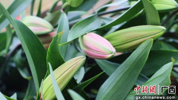 中新网广西新闻1月27日电 (梁栩然 黎育佳)清晨,广西桂平市垌心乡王举村的冬闲田上,一座座大棚整齐排列,抵挡了低温的侵袭。棚内,娇嫩的百合花在恒温环境中舒展枝叶;棚外,挺拔的剑兰在风中傲然伫立,饱满的花苞如麦穗般整齐排列,静待绽放。
