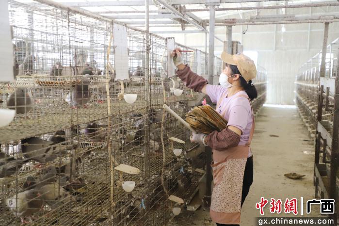 中新网广西新闻4月4日电(钟楚媚 丘靖珊 陆锦婷 林琳)近年来,广西贵港市港南区湛江镇立足民生所需,以肉鸽养殖产业为承载平台,通过龙头企业设岗、合作社带户、农户参与的分工格局,将越来越多的就业岗位送到群众“家门口”。小小肉鸽成为群众就近就业增收、乡村振兴稳步推进的“致富鸽”。