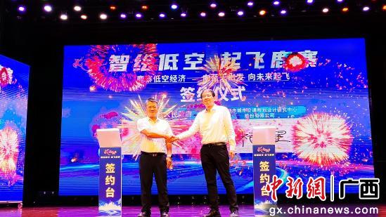 中新网广西新闻9月1日电 (曹伟军)8月31日,广西柳州市鹿寨县人民政府与广东深圳市城市交通规划设计研究中心股份有限公司,在鹿寨举行低空经济合作签约仪式。