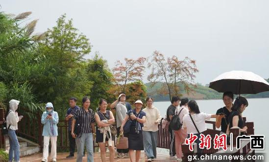 推介会后,嘉宾们前往极萃园参观,近距离感受茉莉花产业的创新发展,在西津国家湿地公园观察珍稀鸟类、了解湿地生态,在中华茉莉园沉浸式感受花海魅力,在香香花园参与手工制作,在博物馆鉴赏文物、聆听历史,在南方茶厂观摩制茶工艺,全方位体验横州文旅的独特魅力。