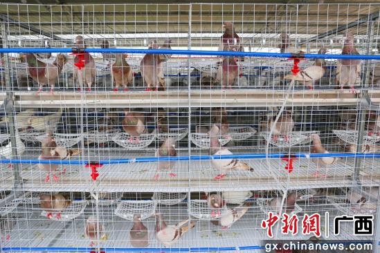 “咕咕咕……”近日,步入湛江镇芦山村村民周衍忱的养殖场,未见鸽影,先闻鸽声。场内,一排排鸽笼整齐排列,每层划分为多个独立套间,每个套间里住着羽翼鲜亮、体态丰盈的一对种鸽。