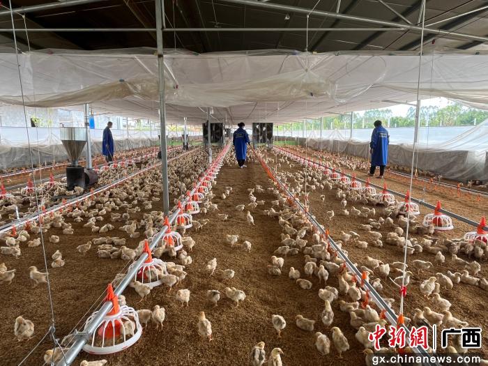 中新网广西新闻10月22日电(覃建源 林琳)近日,位于广西贵港市港南区湛江镇的贵荷生态养殖小区项目迎来首批1.8万羽鸡苗进场,标志着该镇首个规模化肉鸡养殖项目正式建成投产,为当地设施农业发展注入新动力。