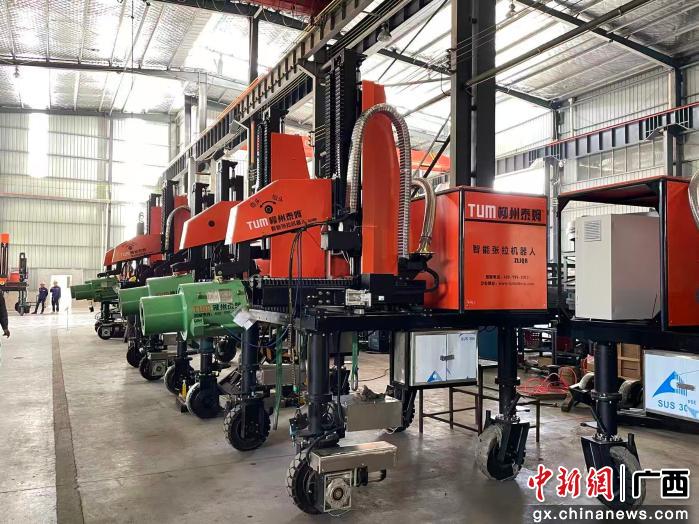 中新网广西新闻11月24日电 (黄艳梅 奠佳瑶)走进位于广西柳州市柳江区新兴工业园的柳州泰姆预应力机械有限公司的生产车间,机床轰鸣声此起彼伏,转体球铰在生产线上逐渐成型,施工机器人整齐码放,工人们正忙着做检测调试。