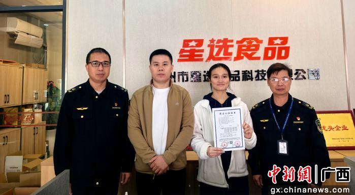就在一天前,柳江区市场监督管理局工作人员上门送上一份“湾区认证”电子证书,为企业再添“新动能”。这张“绿色通行证”让星选产品得以直供粤港澳大湾区、迈向国际市场。