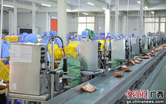 中新网广西新闻11月28日电(兰德波 覃柳莹)11月27日,广西柳州市星选食品科技有限公司生产车间内机器轰鸣,自动化生产线“火力全开”——米粉、酸笋、腐竹精准配比后秒速装袋,传送带上一包包螺蛳粉鱼贯而出,空气里酸辣鲜香扑鼻。