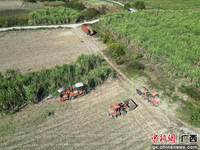 中新网广西新闻12月3日电(覃义琛 银雪波)近日,广西罗城仫佬族自治县龙岸镇高安村的蔗田里机声隆隆,一台台甘蔗收割机穿梭其间,伴随着清脆的切割声,一根根饱满的甘蔗被整齐收割、堆放,呈现出一派繁忙的丰收景象。作为当地支柱产业的蔗糖产业,正借助机械化的“东风”,奏响“甜蜜乐章”。