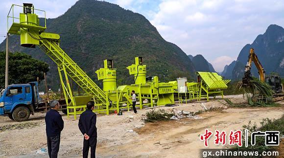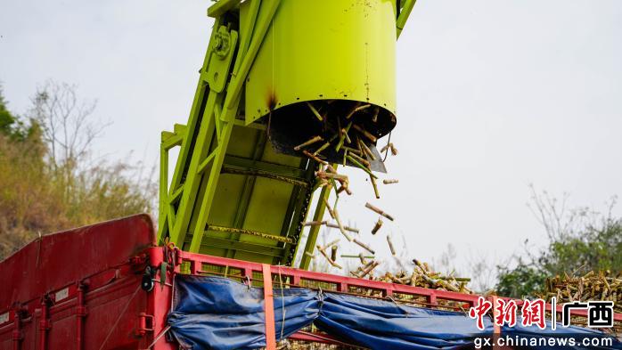 中新网广西新闻12月25日电 (韦求蓉 林咏琪)连日来,在广西河池巴马瑶族自治县百林乡阳春村的甘蔗分步式机收除杂点,分步式甘蔗机有序高效运转。工人熟练地操作着抓铲挖掘机,将新鲜砍伐好的甘蔗送上滚动台,随后,剥叶、除杂、切段、装车,整套工序一气呵成。