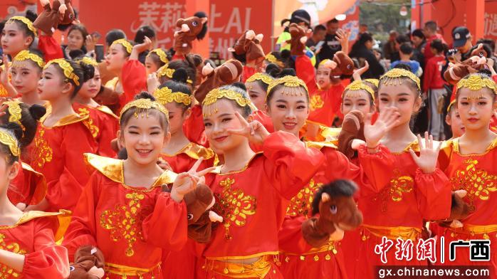 中新网广西新闻2月8日电(谢予薇 黄桂兰 陈国海)无人机舞出“龙凤呈祥”,机械狗与醒狮同台共舞,2月7日,一场传统非遗与现代科技交融的盛宴,在“世界茉莉花都”横州市上演,正式拉开横州市第二届茉莉文化嘉年华暨特色产品促销活动的帷幕。