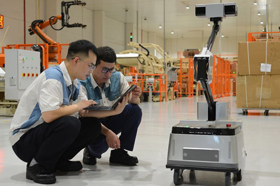技术人员正在调试巡检机器人。 周珂全 摄