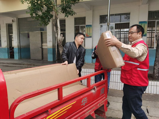 在贺州市富川瑶族自治县石家乡曹里村,为了让村小学的孩子们能拥有更好的学习环境,驻村书记范志宏和工作队员潘武宁积极协调联系后盾单位捐赠课桌,并到现场协助搬运。(通讯员 粟江文 蒙建宝)