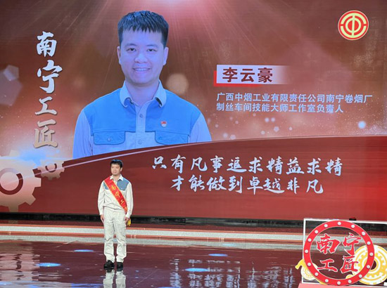 据了解,“南宁工匠”选树活动是南宁市总工会深化新时期产业工人队伍建设改革,大力弘扬劳模精神、劳动精神、工匠精神,不断提高技术技能水平,助推全市经济社会全面发展的重要举措。南宁卷烟厂制丝车间技能大师工作室带头人李云豪作为优秀工匠代表被选树为2023年“南宁工匠”。多年来,李云豪深耕技术创新与车间智能化转型,形成了多项可推广应用的项目成果。其领办的工作室培养了一批批具有精湛技艺、高超技能、创新精神的青年技术骨干,为南宁卷烟厂的创新发展和人才培养作出了巨大贡献。