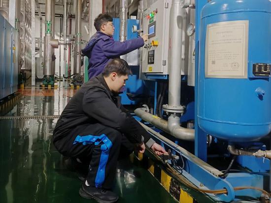车间员工在检查干燥机。李俊 摄