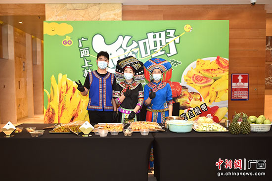 活动现场,嘉宾们饶有兴致地品尝了具有地方特色的广西上林酸嘢。上林酸嘢是用酿造食醋做成,把新鲜的果蔬切成片状或者是块状,然后用酸醋浸没让酸味浸入果蔬当中,十分入味。满盘的水果酸嘢散发着诱人的独特香味,大家不禁你一块我一块,都吃得津津有味。近年来,广西酸嘢强势出圈,俘获了各类人群的味蕾,众多明星也为之倾倒纷纷打卡,而上林酸嘢可真算是当天活动现场的“明星”了。
