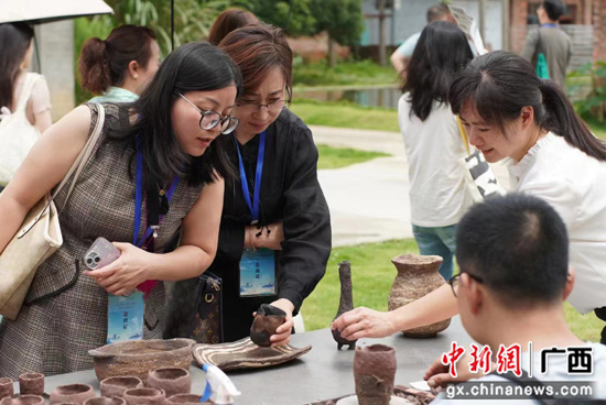 图为6月15日,图为考察团在柘漓文化产业园内了解陶器制作工艺考。钟博羽 摄