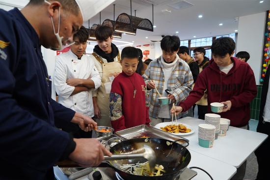 活动中,师生们不仅通过包饺子体验这一北方传统美食的魅力,还参与了糖画和糖葫芦的制作,将甜蜜的传统技艺带入现代生活。专业指导员详细讲解并示范了包饺子的技巧,让大家在动手实践中感受传统技艺的乐趣。紧接着,南宁老友粉非物质文化遗产传承人陈波先生现场展示了这道地方特色美食的独特制作工艺,吸引了众多目光,使众人近距离感受南宁本地饮食文化的魅力。
