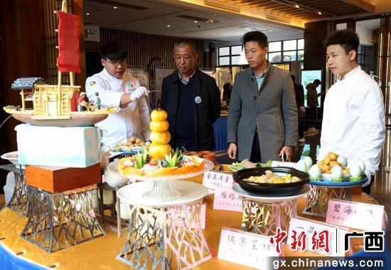 中新网广西新闻1月17日电(苏桂)“平乐十八酿宴席”推广展示活动,日前在广西桂林市平乐县举行。“平乐十八酿”作为广西菜系的研究课题,在该活动中通过现场制作、展示“平乐十八酿”宴席菜系,现场发布《平乐十八酿烹饪技术规范》(DB4503T0027-2021)。