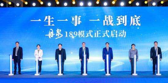 “铁三角赢战略”丹泉189模式发布会近日在成都召开。国家食品质量检验检测中心副主任程劲松、河池市副市长陈翻腾、广西壮族自治区商务厅二级巡视员曹柯笛、广西壮族自治区工业和信息化厅食品处主任韦莉、丹泉集团党委书记董事长吴荣全等嘉宾共同见证。