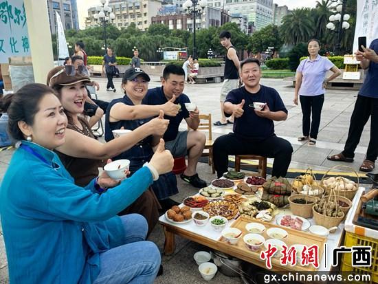 8月22日,“鄂尔多斯文化神州行”参展商品尝桂林特色油茶。邓竣缤 摄