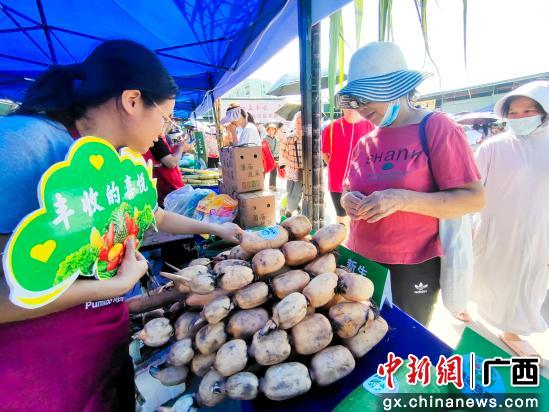 中新网广西新闻9月24日电(管少华 郭开浪)9月23日一大早,广西南宁市邕宁区最大的土货农贸市场——康岭农副产品交易市场人声鼎沸。“庆丰收寻邕味——2025年邕宁区农民丰收节”活动在这里热闹开场,吸引众多市民群众、农产品采购商前来参与。