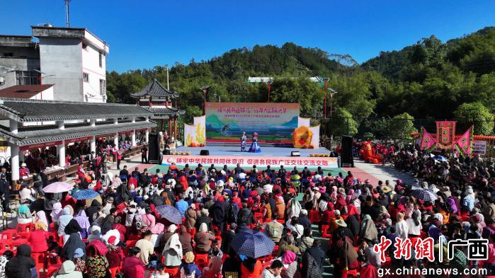 中新网广西新闻12月3日电(钟健 苏津平 刘佩林 麦栋华)近日,广西贵港市平南县国安瑶族乡举办“同心共栽团结花 协力共筑振兴梦”2025年盘王节暨渔业发展交流活动。瑶族同胞与四方游客欢聚一堂,共庆佳节,浓郁的民族风情与欢乐的节庆氛围交织。