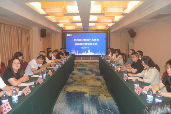 揭牌仪式后,由广西供销循环经济产业集团有限公司与广西壹保惠民科技有限公司联合举办的广西惠农金融科技联盟(筹)座谈会举行。与会成员单位代表结合当前金融产品下乡实际,就如何发挥企业在研发、运营、资源等领域优势,以及服务广西惠农金融科技联盟发展各抒己见。