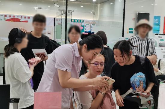 农行广西柳州祥兴支行网点员工指导外籍留学生办理缴费业务。农行广西分行供图