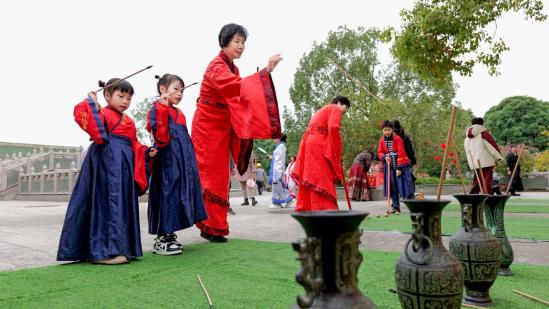 在茶百戏观演环节,伴随着悠扬空灵的古筝乐声,专业茶艺师展示了非物质文化遗产茶百戏的精湛技艺,客户们身着汉服,仿佛穿越到宋代,亲身体验了宋代点茶、品茗,沉浸于茶文化的优雅与韵味之中。活动现场,客户们参与投壶、捶丸、木射等传统游艺项目,这些渊远流长的民间游戏充满趣味性和挑战性,不仅让大家在互动中收获欢乐,更体验到了古人生活的智慧和乐趣。