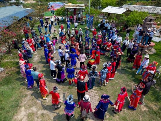 活动以壮族迎客酒、竹竿舞拉开序幕,与会嘉宾身着民族服饰,体验唱山歌、抛绣球、敲大鼓等传统项目,工作人员还带来了精彩的壮族风情歌舞表演,展现壮族文化的独特魅力。在传统的长桌宴上,与会嘉宾品尝特色美食,畅谈交流。