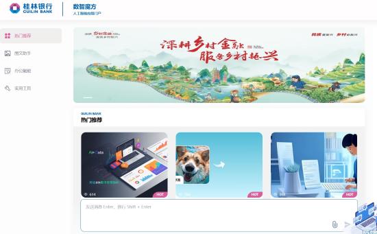 基于DeepSeek框架技术,桂林银行优化上线“数智魔方”AI应用门户,设置AI制度查询、智能写作助手、AI报告生成等多项功能,开辟数智化金融服务新模式。