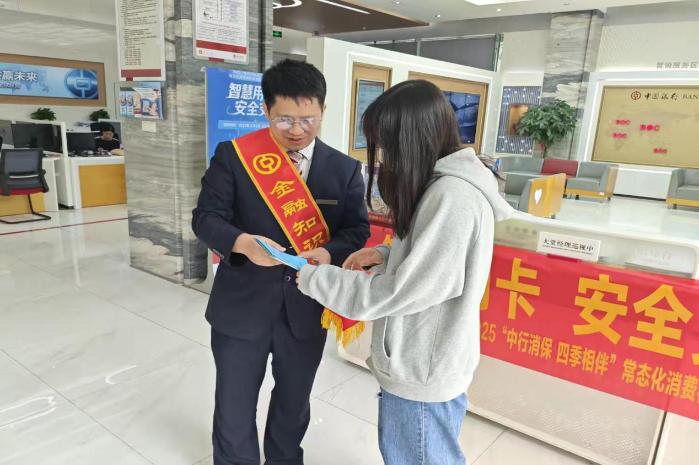 中行辖内各分行网点筑牢金融安全日常防线,在网点入口处、客户等候区等关键区域,整齐摆放安全用卡、网络支付防骗、个人信息保护等主题宣传折页。大堂经理化身“安全科普官”,通过通俗易懂的语言、真实典型的案例,向客户详细讲解银行卡安全用卡技巧,针对网络诈骗高发态势,重点普及了识别方法与防范技巧。