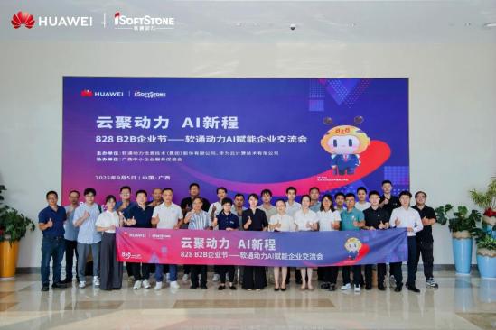 近日,软通动力联合华为云主办、广西中小企业服务促进会协办的“828 B2B企业节——AI赋能企业交流会”在华为广西区域总部举行。来自广西壮族自治区制造、零售行业的30余家企业代表齐聚一堂,深入交流如何以AI为翼,助推企业智能化发展,并共同揭幕2025年828 B2B企业节广西站首发仪式。