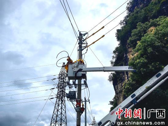 图为崇左大新供电公司工作人员为景区线路加装自动化开关,提高线路供电可靠性。周芝宁 摄