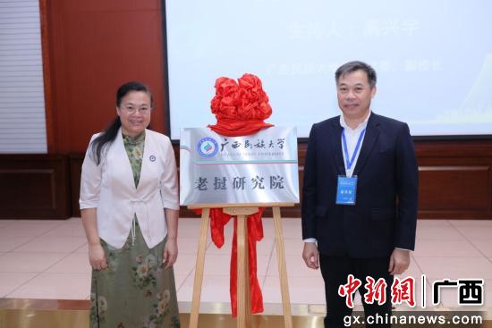 中新网广西新闻5月28日电(陈丙先)近日,广西民族大学老挝研究院揭牌成立。广西民族大学校长、老挝研究院名誉院长韦仕珍教授与老挝沙湾拿吉大学副校长、老挝研究院学术委员会联席主任西提赛教授共同为研究院揭牌。