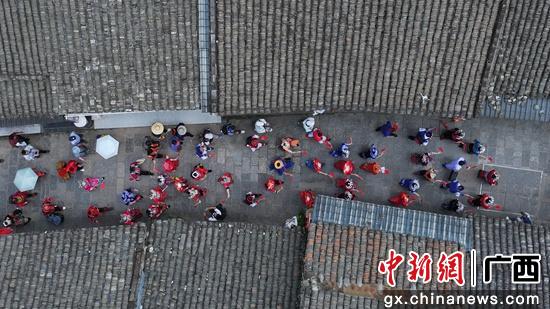 图为歌手们将山歌魅力带到青石板路上。(无人机照片)杨宗盛 摄