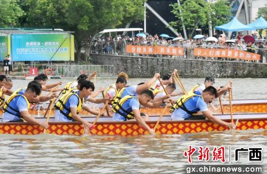 岸上,热情的市民与游客挤满观赛区,加油声、助威声此起彼伏,与急促的鼓点、有力的划桨声交织,将现场气氛不断推向高潮。经过预赛、复赛、半决赛、小决赛和决赛两个多小时的激烈角逐,容县都峤龙舟队率先冲过终点线,勇夺桂冠。(完)