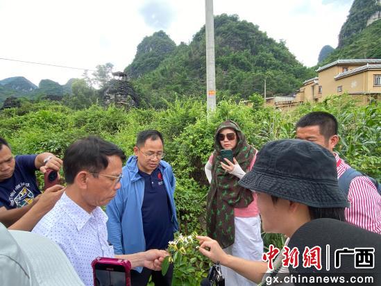 图为代表团实地考察马山山银花种植基地。广西药用植物园供图